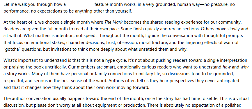 I was recently sent an email from a supposed book club wanting to promote my novella, The mark, for a month and then host a virtual meeting where I discuss the work with readers. The Mark has been selling very well lately, finally breaking triple digits for two-hour mysteries, so I immediately perked up.